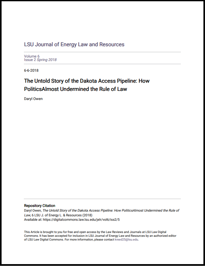 The Untold Story of the Dakota Access Pipeline: How Politics Almost Undermined the Rule of Law, by Daryl Owen
