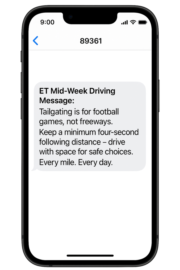 The weekly message reinforces a simple truth: Safety isn’t just a moment at the start of a meeting or a monthly message – it’s a mindset we live out every mile, every task, every day.